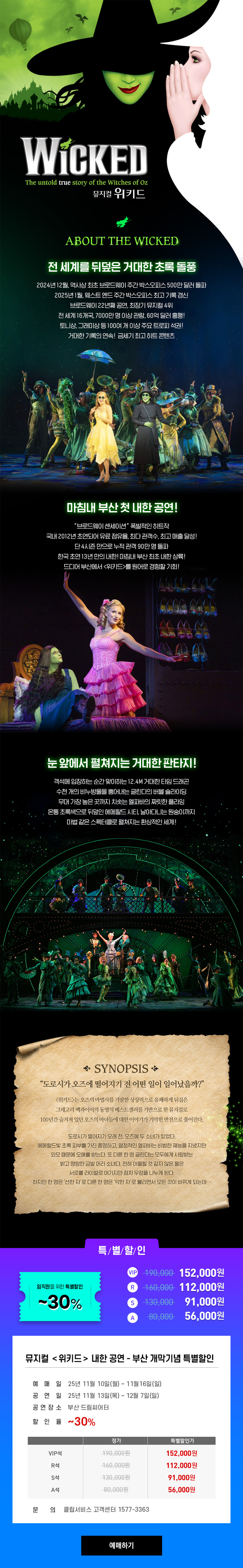 뮤지컬 <위키드> 내한 공연-부산 개막기념 특별할인