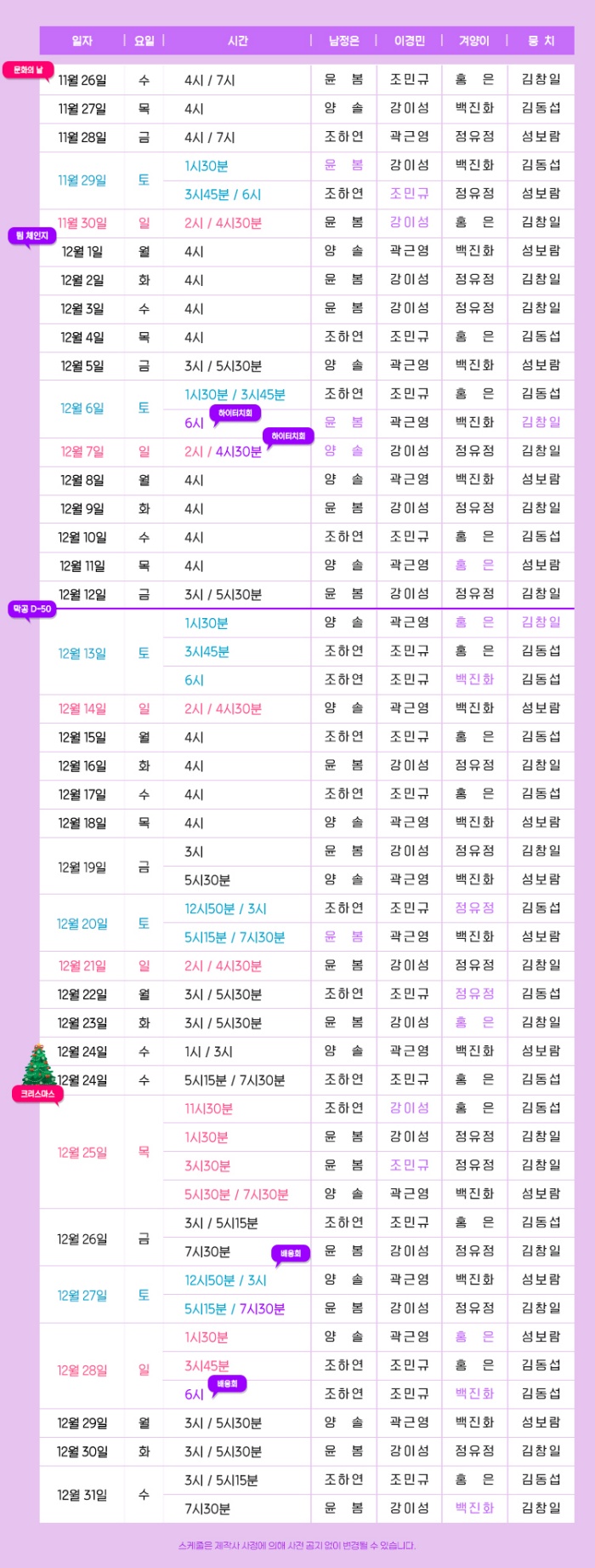 *12/24(수) 오후 1시, 3시, 5시15분, 7시30분