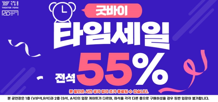 - 수~금 오전 11시 / 토, 일 오전 11시, 오후 2시, 4시30분 (월, 화 공연없음)