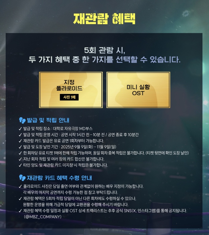 유효기간(이용조건) | 2025년09월30일(화) ~ 10월26일(일) (예매한 공연일시에 한해 이용 가능) | ||||||||