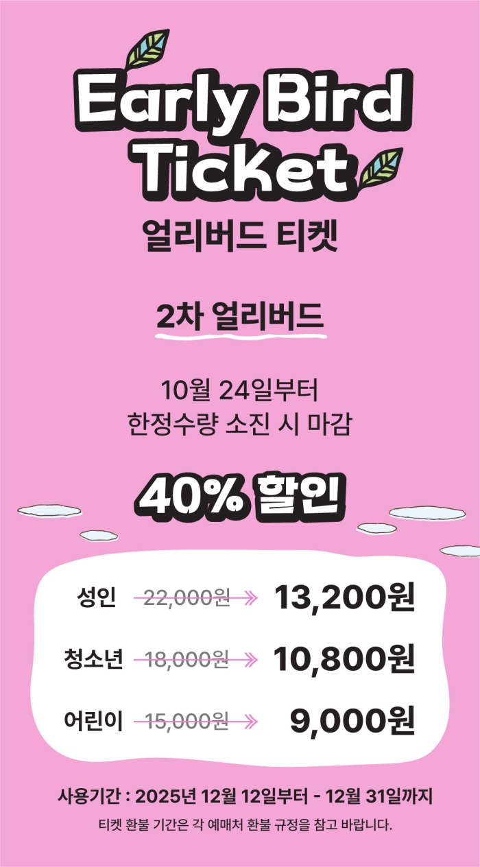 - 얼리버드 티켓 사용기간 : 2025년 12월 12일(금) ~ 2025년 12월 31일(수)