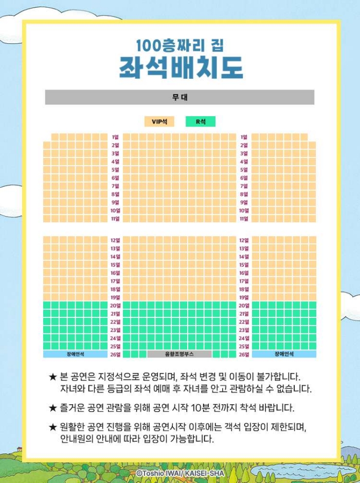 ※ 좌석배정은 회차별로 상이하며 당일 잔여석에서 예매 선착순으로 배정됩니다. (좌석 지정 불가)