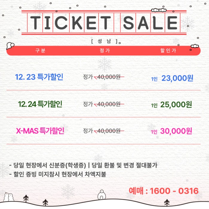 | 유효기간(이용조건) | 2025년12월23일(화) ~ 12월25일(목) (예매한 공연일시에 한해 이용 가능) | ||||||||