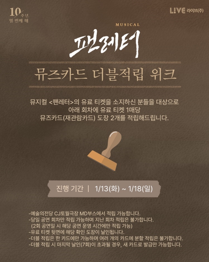 뮤지컬 <팬레터> 10주년 기념 공연 - 비지정석