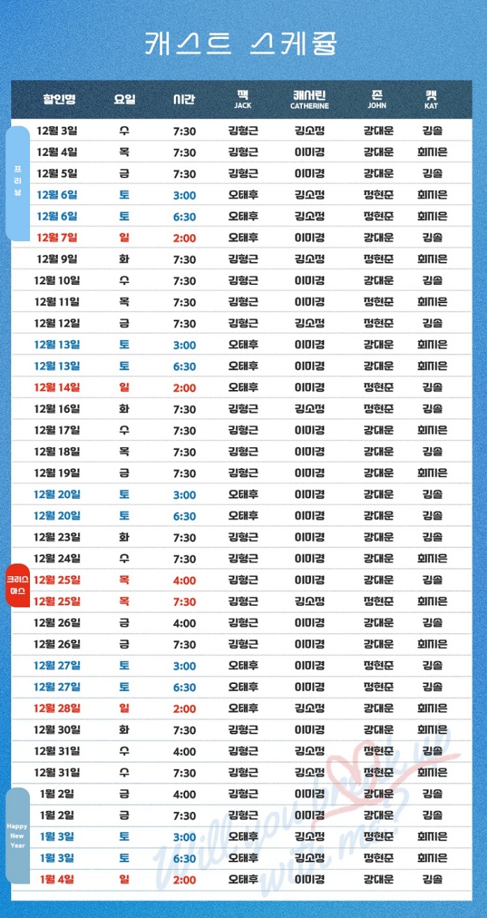 *12/25(목), 12/26(금), 12/31(수), 01/02(금) 오후 4시, 7시30분