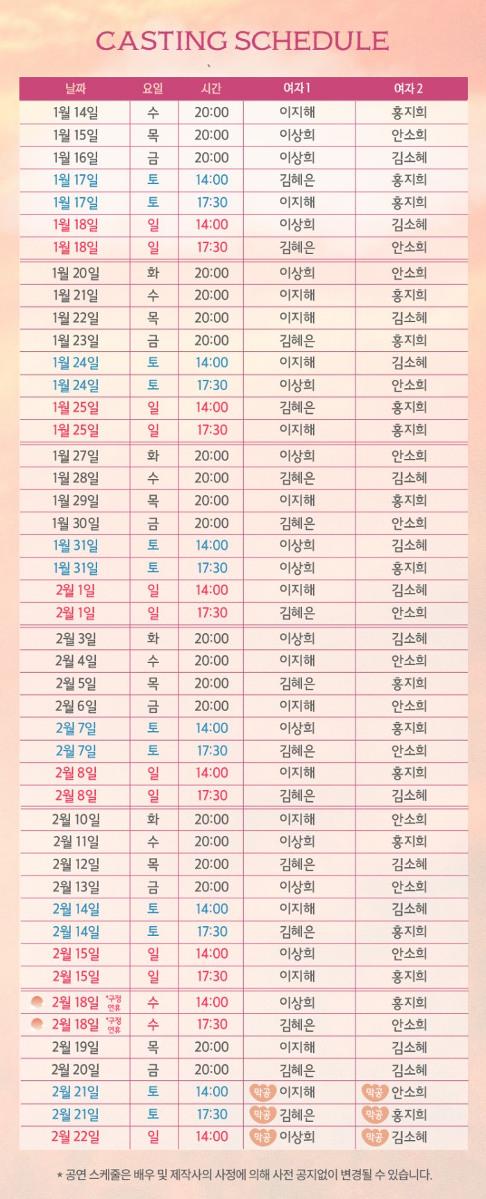 *02/16(월), 02/17(화) 공연없음