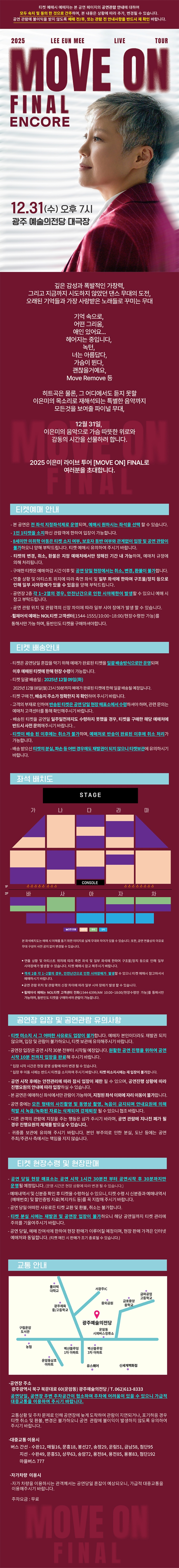 | 유효기간(이용조건) | 2025년12월31일(수) (예매한 공연일시에 한해 이용 가능) | ||||||||