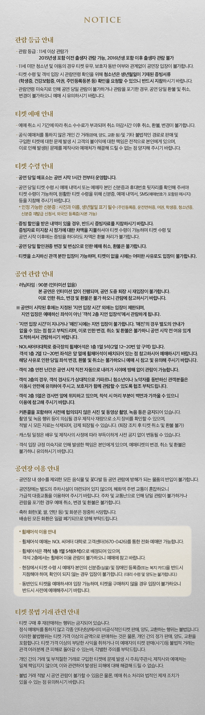 ∙ 취소마감시간 : 공연일 1일 전 오후 5시 / 공연일이 일요일, 월요일인 경우 토요일 낮 12시