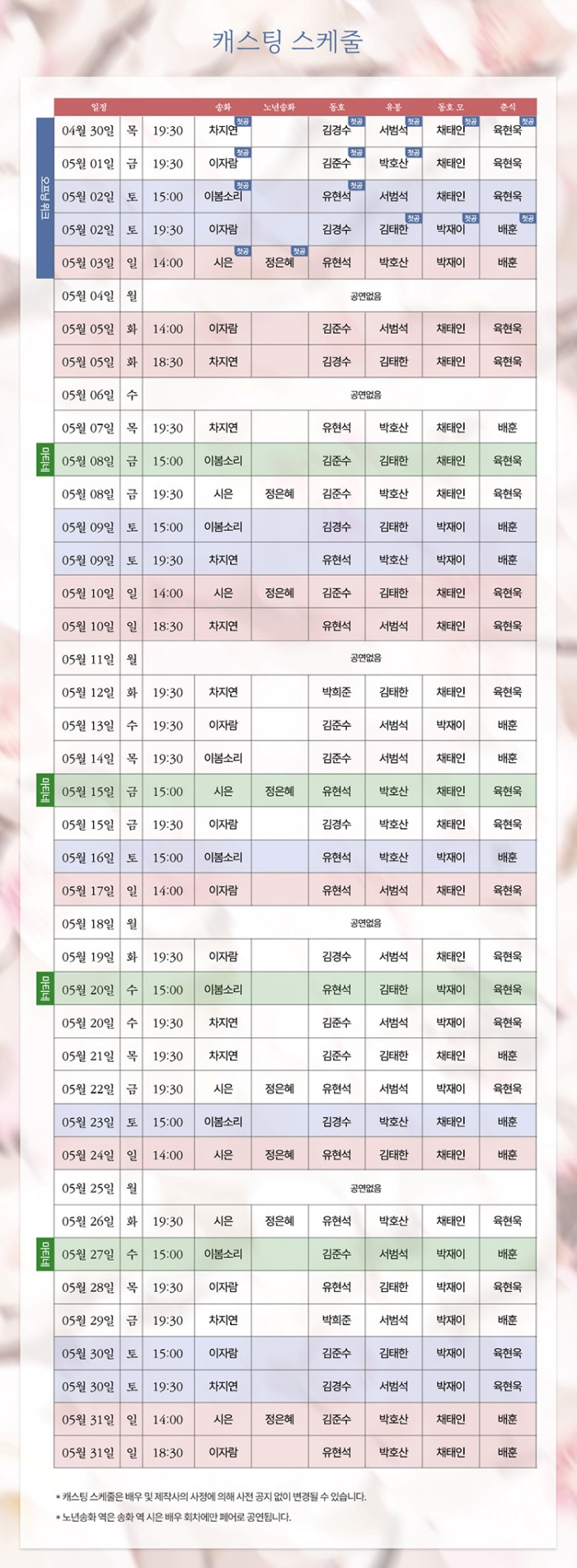 * 5/3(일) 18시 30분 공연없음, 5/6(수) 공연없음