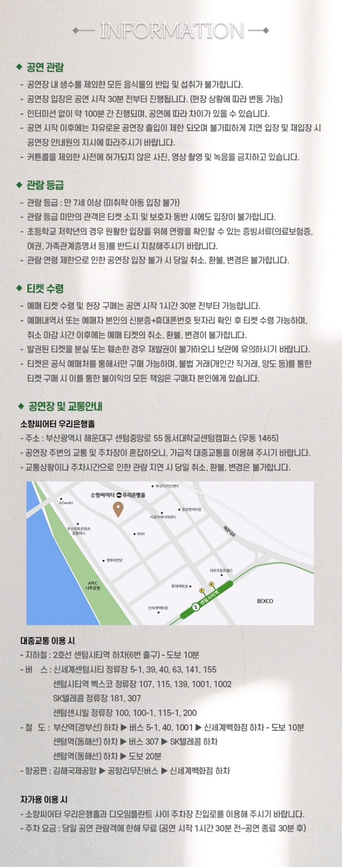 ※ 좌석배정은 회차별로 상이하며 예매선착순으로 배정됩니다. (좌석 지정 불가)