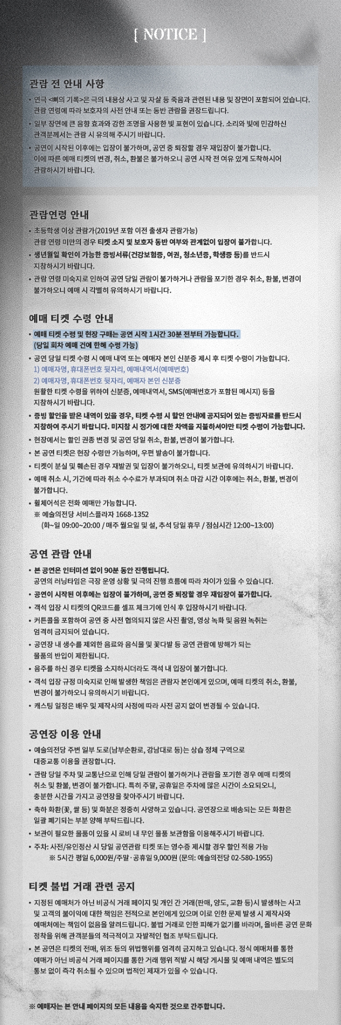 | 유효기간(이용조건) | 2026년04월07일(화) ~ 04월19일(일) (예매한 공연일시에 한해 이용 가능) | ||||||||