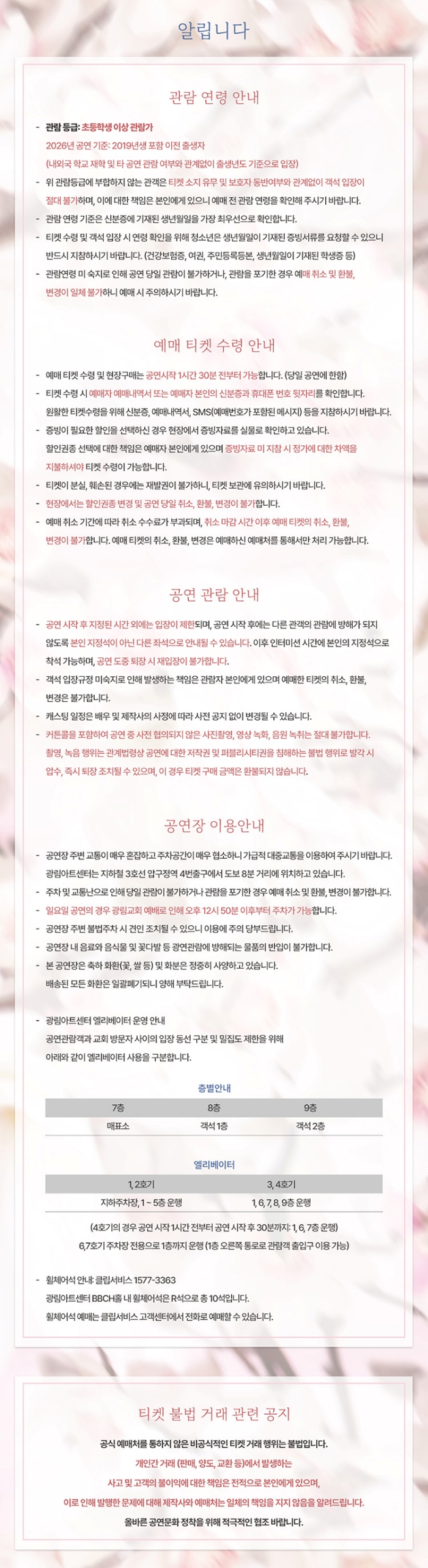 | 유효기간(이용조건) | 2026년05월02일(토) ~ 05월24일(일) (예매한 공연일시에 한해 이용 가능) | ||||||||